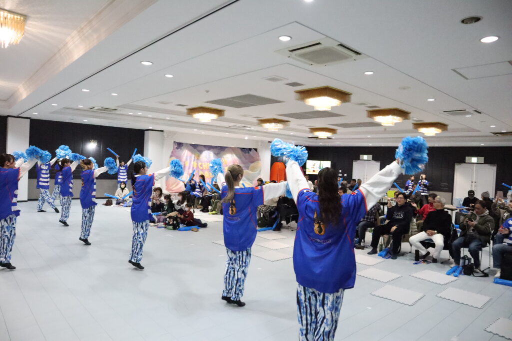 ハーフタイムには、DWLのダンスパフォーマンスに加え、司会を務めたMASARUさんによる歌の披露も行われ、会場は大いに盛り上がりました。